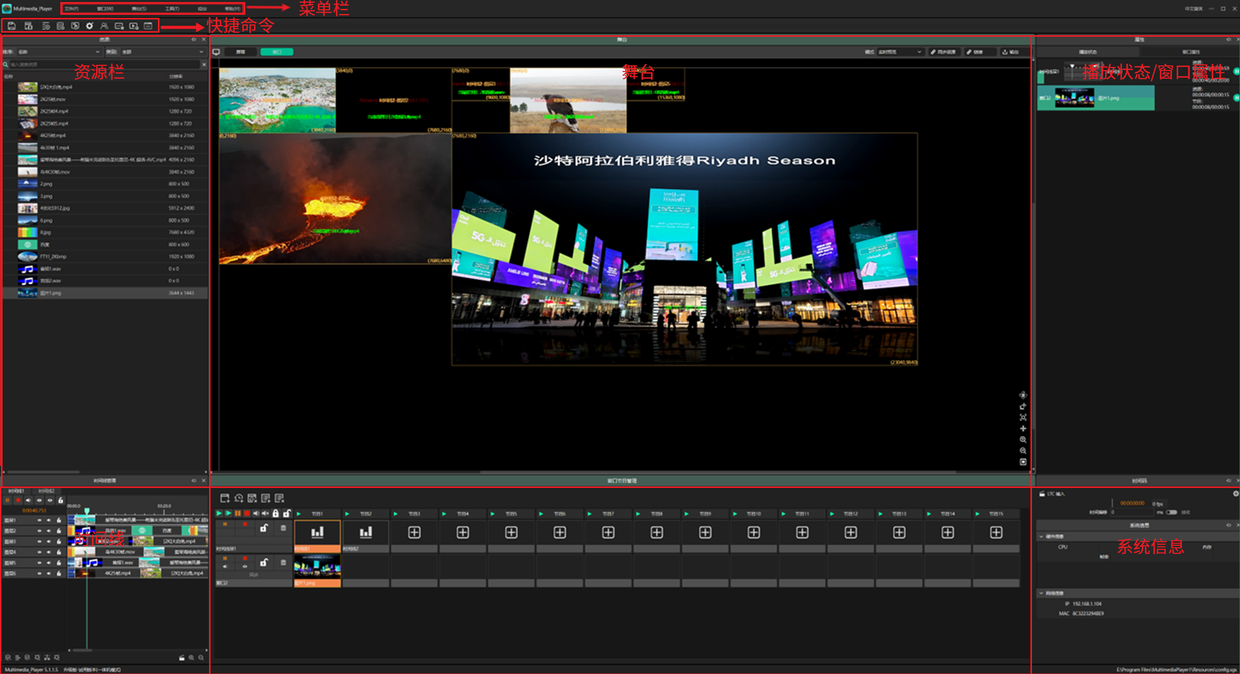 VMEET E2媒体播控系统是针对多窗口、广告播放与权限管理优化的高级多媒体管理平台。主要用于大型屏幕及复杂异形屏幕场景的拼接和同步播控,支持8K硬解码、虚拟屏幕管理等创新技术,轻松实现中大型舞台演出等场景应用。